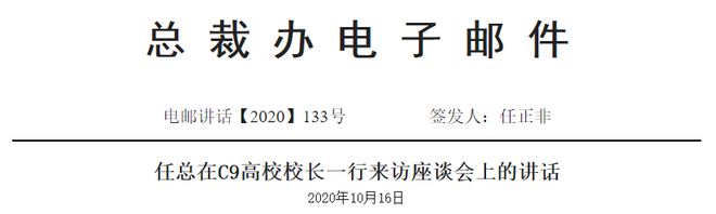 《任总在C9高校校长一行来访座谈会上的讲话》原文:
