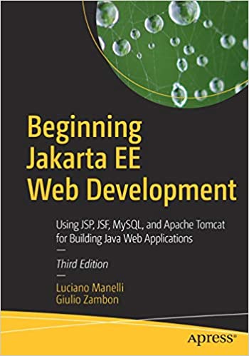Beginning Jakarta EE Web Development is a comprehensive introduction to building Java-based web applications using JavaServer Pages (JSP) using Jakarta Server Pages, JavaServer Faces (JSF) using Jakarta Server Faces, and the Apache Tomcat web application server. Other APIs including JSON and the XML-based job specification language (JSL) are covered along the way.