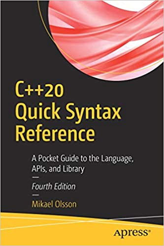 This quick C++ 20 guide is a condensed code and syntax reference to the popular programming language, fully updated for C++20. It presents the essential C++20 code syntax in a well-organized format that can be used as a handy reference.
