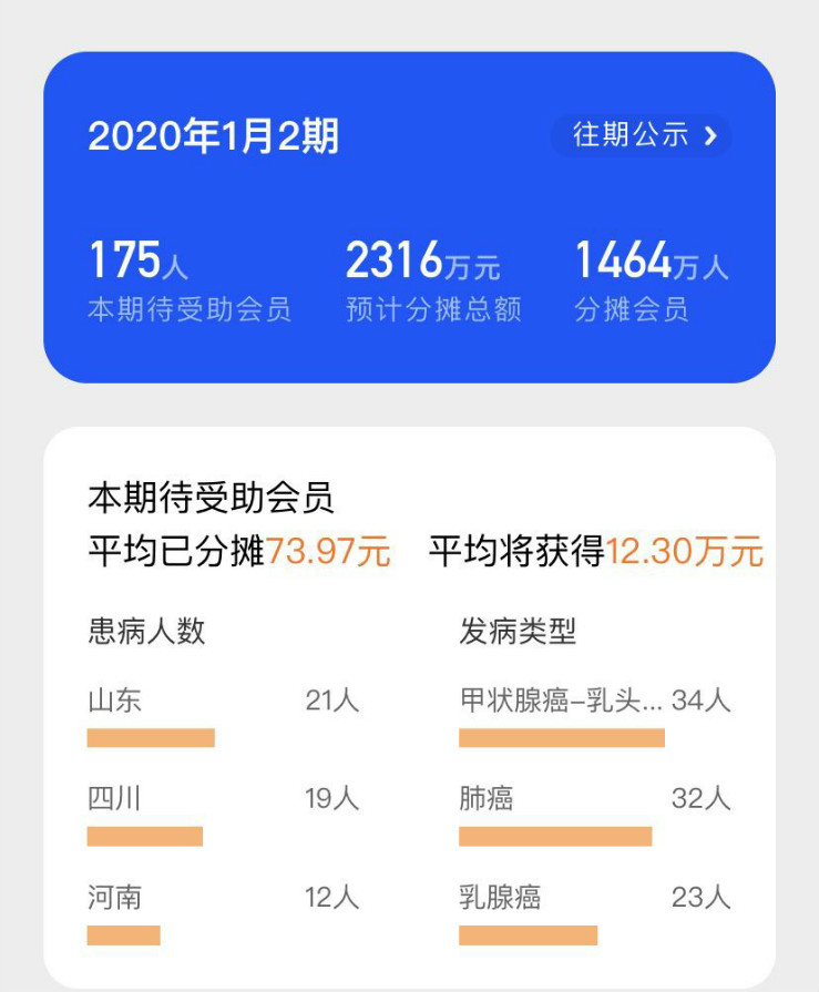 水滴互助分摊信息公示 来源:水滴互助小程序