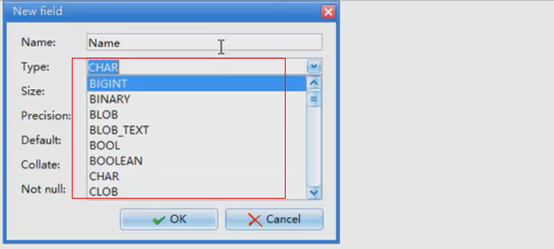 定义字段发现有很多数据库类型,把其他数据库类型也包括进去了,我们可以写成自己熟悉的类型,便于迁移